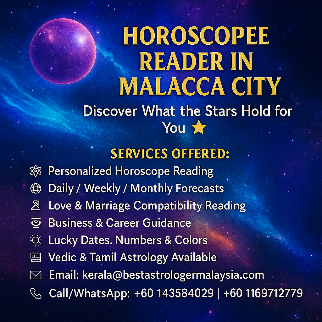 🔮 Horoscope Reader in Malacca City – Discover What the Stars Hold for You 🌟 Unlock the Secrets of Your Future with Trusted Horoscope Guidance in the Heart of Malacca! Nestled within the historic charm of Malacca City, our expert Horoscope Reader offers personalized ...