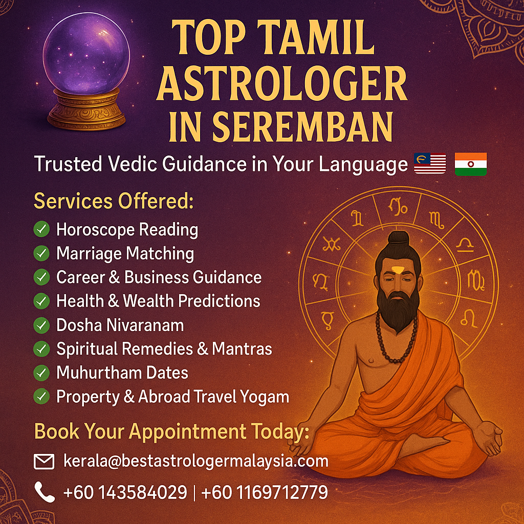 🔮 Top Tamil Astrologer in Seremban – Trusted Vedic Guidance in Your Language 🇲🇾🇮🇳 🌟 Are you searching for clarity in love, career, marriage, or family life? Meet the most trusted Tamil Astrologer in Seremban, offering accurate Vedic astrology services rooted in tradition and ...