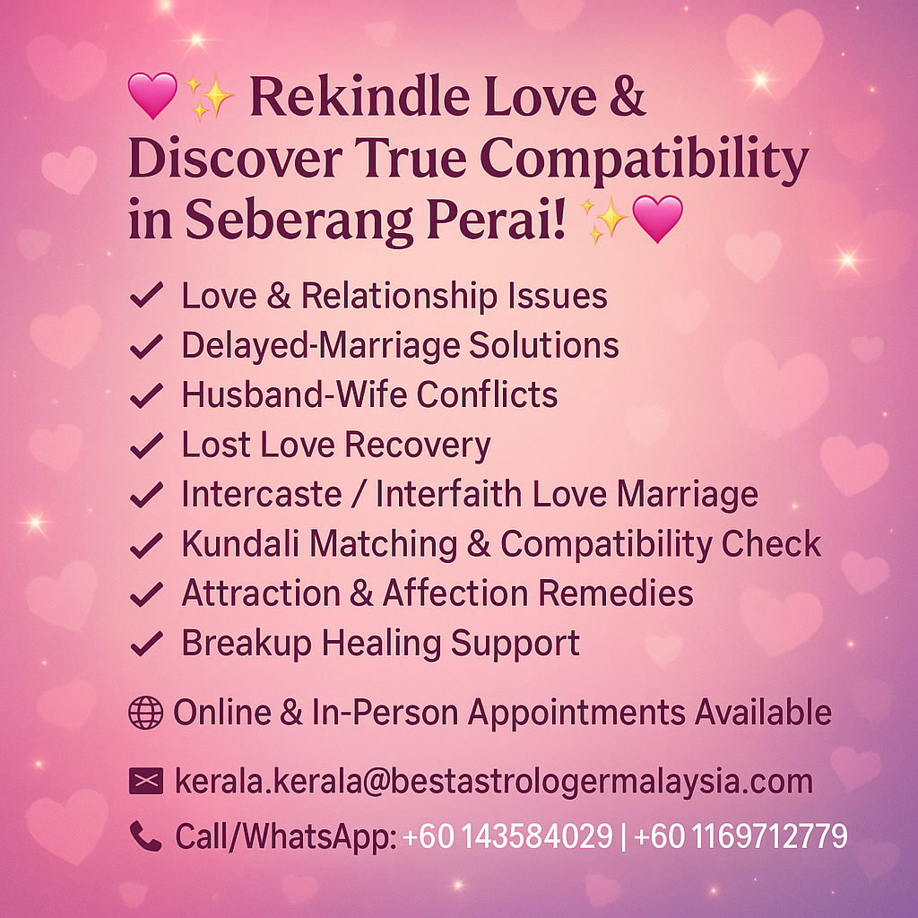 💖✨ Rekindle Love & Discover True Compatibility in Seberang Perai! ✨💖 Meet the Famous Love Astrologer Trusted by Thousands Across Malaysia 🌸 Are you going through relationship struggles?💔 Is your love life stuck in confusion or heartbreak?💍 Planning to propose but unsure about compatibility? ...