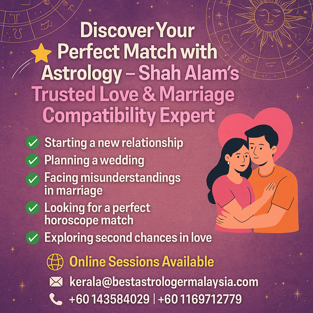 🌟 Discover Your Perfect Match with Astrology – Shah Alam’s Trusted Love & Marriage Compatibility Expert 💞🔮 Looking for lasting love or seeking clarity in your marriage? ✨ Let the stars guide your heart! Meet Shah Alam’s renowned Astrologer, a trusted guide for Love ...