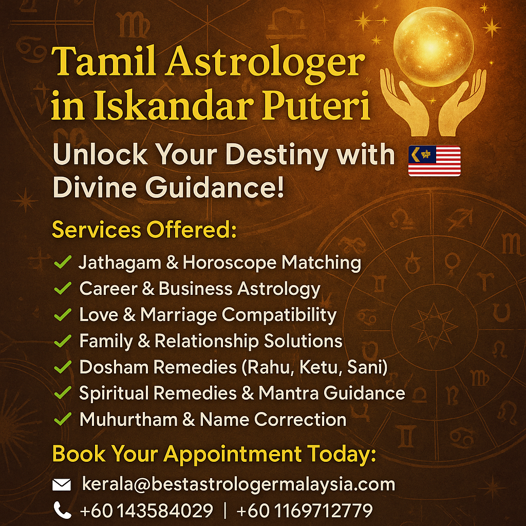 🌟 Tamil Astrologer in Iskandar Puteri – Unlock Your Destiny with Divine Guidance! 🔮🇲🇾 Are you searching for a trusted Tamil astrologer in Iskandar Puteri who can help you find clarity in life, love, and career? Look no further! With years of experience in ...